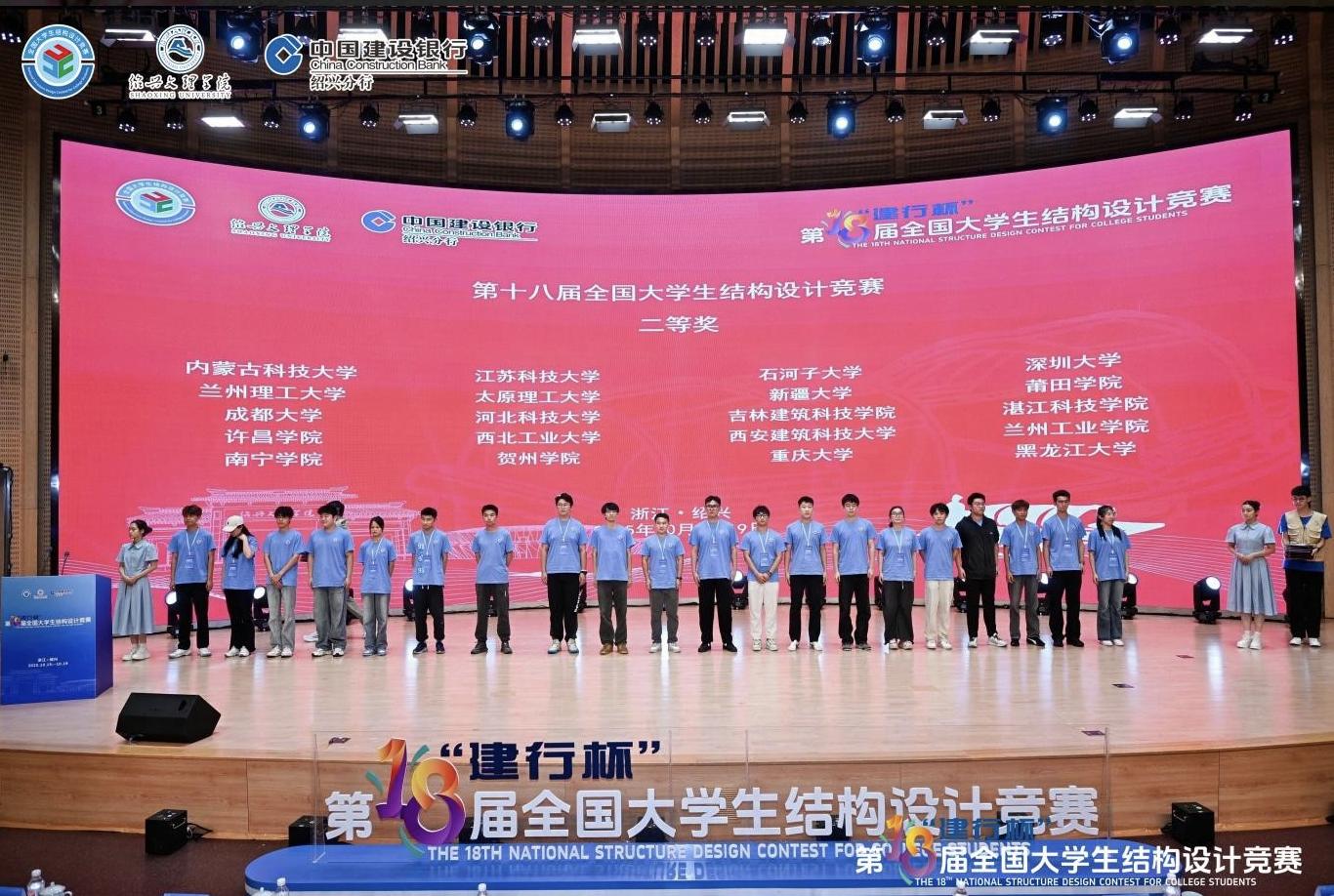 10月19日,在浙江绍兴举办的“建行杯”第十八届全国大学生结构设计竞赛圆满落幕。南宁学院土木与建筑工程学院参赛作品“邕澜号”(参赛学生:颜秋萍、周崇禧、严波,指导老师:梁小光、赖月漂)与来自全国119所高校的120支队伍同台竞技,最终以全国第48名优异成绩荣获二等奖,相较历年最好成绩,排名跃升30位。