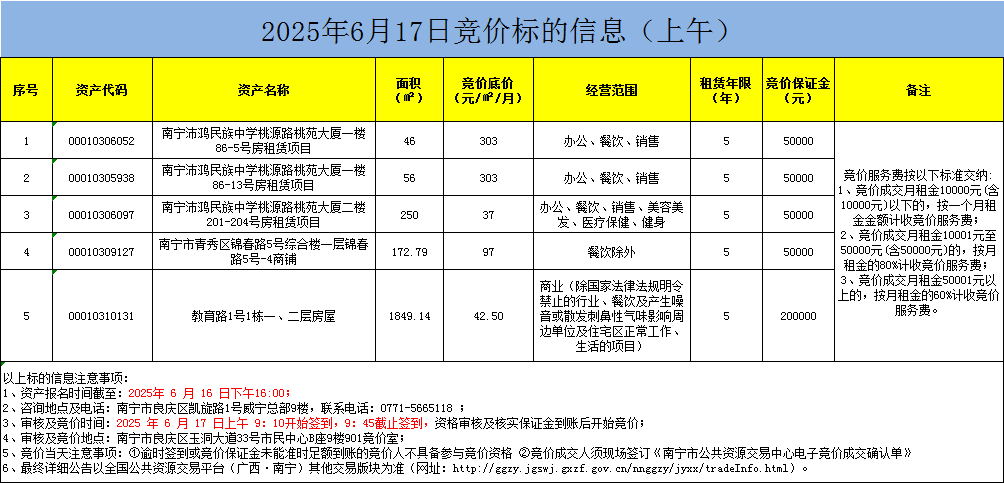 2025年6月17日竞价标的信息(现场竞价)