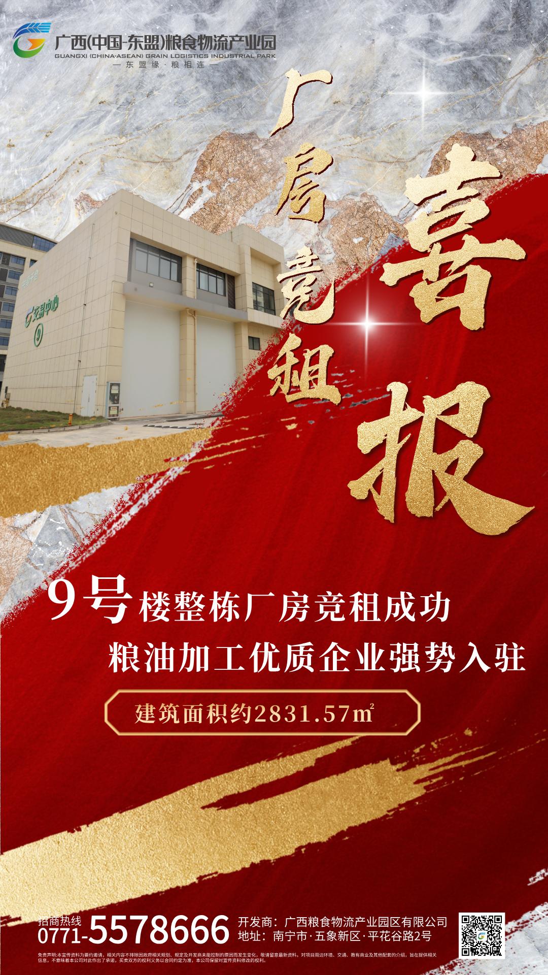 喜讯!广西(中国-东盟)粮食物流产业园区9号楼整栋厂房成功竞租